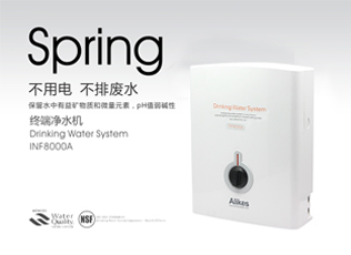 Alikes INF8000E凈水機,采用國際流行的雙芯過濾的101水道平臺,食品級高強材料成型……