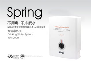 Alikes終端凈水機利用市政管道自來水的壓力驅(qū)動水流,通過獨特的濾芯來達到生飲的標準……